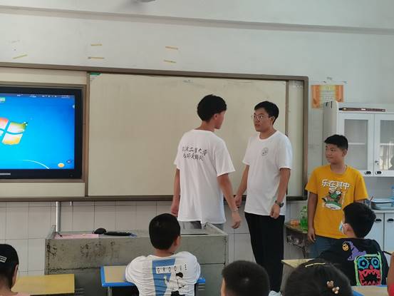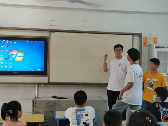 为让孩子们更加直观清楚地了解红色文化,激发孩子们学习党史相关知识的兴趣,支教团成员特意为孩子们编排了红色历史剧,红色历史剧由诸多经典历史片段编排而成。一段段经典场景被演绎出来的时候,孩子们聚精会神的观看着,唯恐错过了任何一个片段;当演绎到战士与敌人厮杀誓死抵抗时,孩子们的眼神中透露着对革命战士的关心及对敌人的愤怒;当演绎到革命先辈被敌人关进监狱被受以极刑之时,孩子们的眼眶湿润了,情不自禁地流下了眼泪。