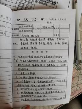 公司20级环境工程二班阳曼在寒假期间也加入了自己家乡利川市南坪乡大河村的志愿者服务队。阳曼所在地区的村委会召开了疫情防控工作会议,会议要求各村、各成员单位做好防范,各村成立防疫领导小组,启动联防联控制度。会议结束后阳曼所在的志愿队迅速投入了工作,对外地返乡人员进行摸底排查,并做好疫情监测、管控等工作。
