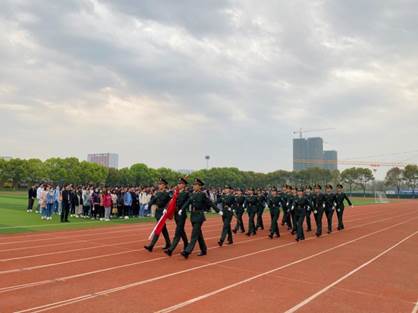 仪式第一项,升国旗。国旗护卫队昂首阔步来到国旗台下出旗,升国旗,奏国歌。伴随着庄严的国歌,五星红旗冉冉升起,全体师生行注目礼。