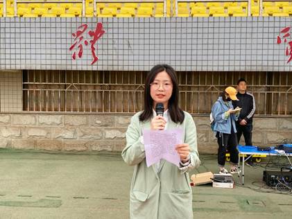 仪式第二项,2020级应化四班庹文君以《回眸党史,感恩今天》为题作国旗下主题发言。2021年是中国共产党成立一百周年,回顾中国共产党的100年峥嵘历史,感恩今日,同学们要在“火热的青春中放飞人生梦想,在拼搏的青春中成就华章。”