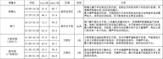 在声检测方面,组员们分别在教辅7、图书馆、三教学楼、南大门附近使用声级计进行了声级测定。