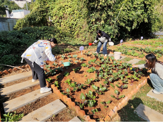 随后,学员们前往公司“千化坊”劳动实践基地,学员们拿起水桶和浇水工具,为种植的蔬菜作物们送上甘霖。他们一边浇水,一边交流着关于农作物生长的知识,感受着劳动带来的喜悦和成就感。