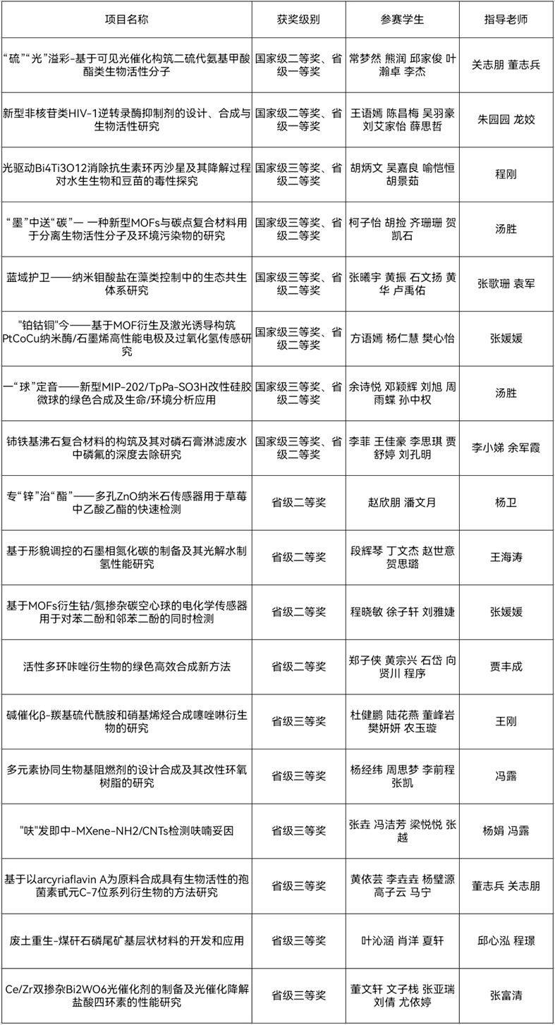 本网讯(通讯员 贾丰成)7月12日,第十届全国老员工生命科学竞赛(2025,科学探究类)圆满落幕。在公司的积极动员和精心组织下,公司师生再次在该项高水平全国性赛事中表现优异,斩获国家级二等奖2项、国家级三等奖6项、省级二等奖4项、省级三等奖6项,共计18项荣誉! 获奖员工覆盖2021级至2023级应用化学、环境工程专业本科生。