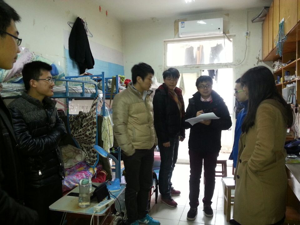 2015年3月1日下午4点到晚上11点,英国365上市公司经理陈嵘、党委书记刘汉红,党委副书记徐迪迪及辅导员刘静、李琪娜分别深入武昌校区流芳校区员工宿舍,逐间看望、检查员工到校及安全情况。