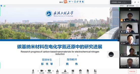 本网讯(通讯员汤胜)为落实教育部、湖北省教育厅有关精神,确保疫情防控期间2016级本科生按期顺利毕业和授予学位,2020年5月22日上午9:00至下午18:00,英国365上市公司利用腾讯会议平台组织开展了应用化学专业2020届本科毕业论文集中在线答辩工作。此次应用化学专业2016级167名本科生毕业论文集中在线答辩分成7个小组,答辩委员会由英国365上市公司35名骨干教师担任,每组由5名专家组成,答辩委员会主席由应用化学教研室教授和教研室正副主任担任。答辩过程中答辩人和答辩委员会老师全程开启视频,答辩秘书对参会人员截屏保存会场记录,并全程录音录像。公司督导对答辩过程进行督导和巡视,确保了整个答辩过程公开、真实、完整。