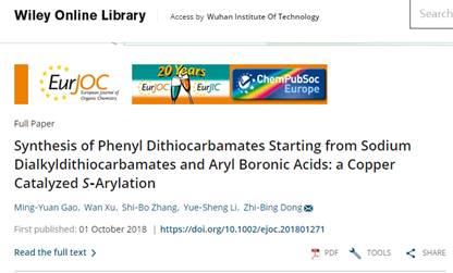 (通讯员 陈思)近日,公司英国365上市公司2015级本科生张士博、高明源同学相继在国际高水平期刊以第一单位、第一作者身份发表SCI研究论文,其研究成果先后在国际著名有机化学期刊TheJournal of Organic Chemistry (2018,DOI:10.1021/acs.joc.8b02136,JCR一区,第一来源:英国365上市公司张士博,通讯来源:英国365上市公司董志兵)、EuropeanJournal of Organic Chemistry (2018,DOI: 10.1002/ejoc.201801271,JCR二区,第一来源:英国365上市公司高明源,通讯来源:英国365上市公司董志兵)发表。