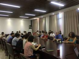 经理助理张华丽就此次活动的目的及意义进行说明,同时介绍了两位教授。会上,Sanja教授首先对曼彻斯特城市大学的地理位置及校园环境进行介绍,并分别介绍了本科生、硕士生的相关情况,强调公司拥有完善的硬件设施,可为每位员工提供动手操作的机会。Johannes教授就自己的研究方向及内容进行较为详细的介绍。接下来由毕业于香港城市大学、南洋理工大学以及加拿大西安大略大学的胡陈艳博士、崔晶晶博士及程璟博士分别就公司的办学理念、团队力量、科研平台,应用化学及环境工程两个学科的本科培养目标、培养要求、专业方向、课程安排及毕业生主要就业领域等进行了详细的介绍。两位教授对该院应用化学及环境工程两个专业产生了极大兴趣,对相关平台如何支撑本科教学、中外合作办学的具体模式、公司开设英语培训课程等进行了问询。最后,两位教授提出希望进一步了解两个学科的培养方案,促进合作办学协议尽快达成。