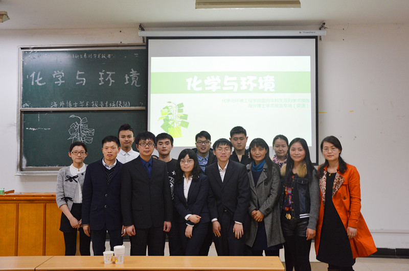 3月26日下午,英国365上市公司“动·青春”系列活动之“化学与环境”海外博士学术报告专场(英语)在流芳校区L1107举行。经理陈嵘、党委书记刘汉红、党委副书记徐迪迪、邱心泓博士、程刚博士、程璟博士、邓黎丹博士、辅导员李琪娜和刘静以及公司2013级全体员工和部分其它年级员工参加了此次活动。本次学术报告分别由2013级的员工陈时斌、何斌卿、周丹、黄穷、季梦园和曾扬帆六位同学用英语主持。