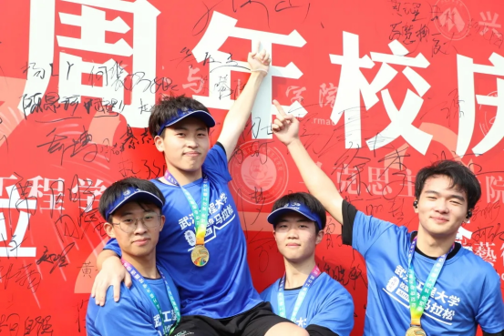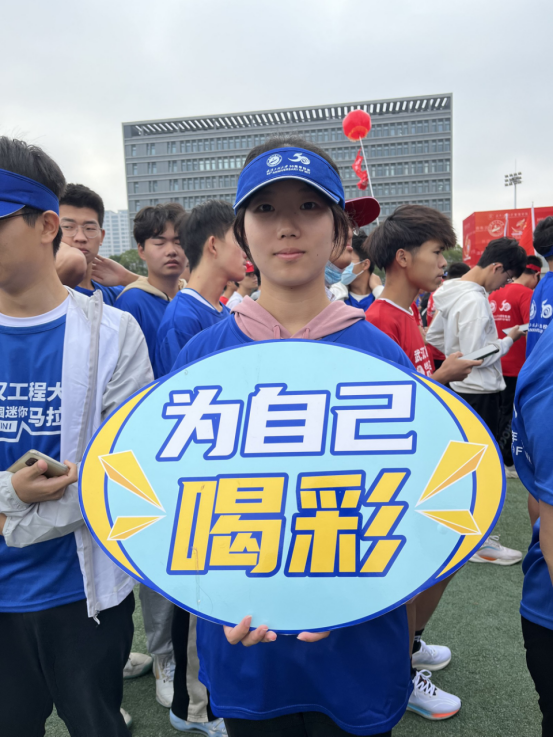 跑完迷你马拉松,同学们纷纷在活动纪念板下签上自己的名字戴上奖牌,拍照留念每个人的脸上都洋溢着青春的笑脸。