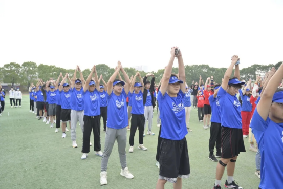 开跑之前,体育老师带领着大家进行科学的跑前热身,动动脖子、拉拉胳膊、高抬腿,简单的拉伸动作,为马拉松做足准备。