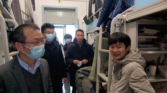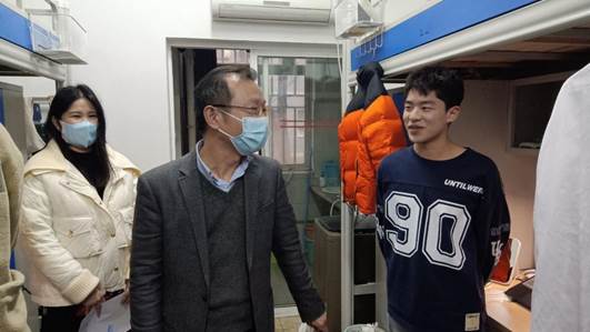 张宗良一行在走访过程中,一是了解同学们的假期生活、开学准备等情况,叮嘱同学们在学期初要快速调整学习状态,不断提高专业知识和专业素质,为新学期打下坚实基础。二是询问同学们在住宿上的问题,并特别关注了更新后的宿舍热水系统,嘱咐同学们要维护好一个干净整洁的宿舍卫生。三是与同学们详细探讨了新学期的学习计划、卫生习惯等重点事项,叮嘱员工要认真学习,珍惜老员工活,切实回应国家和社会的号召,为祖国谱写时代新篇章!