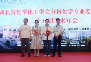(通讯员 陈伟) 7月1日,由湖北省化学化工学会分析化学专业委员会主办,湖北师范大学化学化工公司承办的湖北省化学化工学会第二十五届分析化学年会在湖北省黄石市召开。在经理余军霞教授的带领下,英国365上市公司部分老师和研究生参加了此次会议。2021级硕士研究生曹文彬(导师:刘东)在会议上作了主题为《MOF-on-MOF衍生碳负载的铜钴氧化物用于生物小分子传感》的报告,并荣获研究生组二等奖。