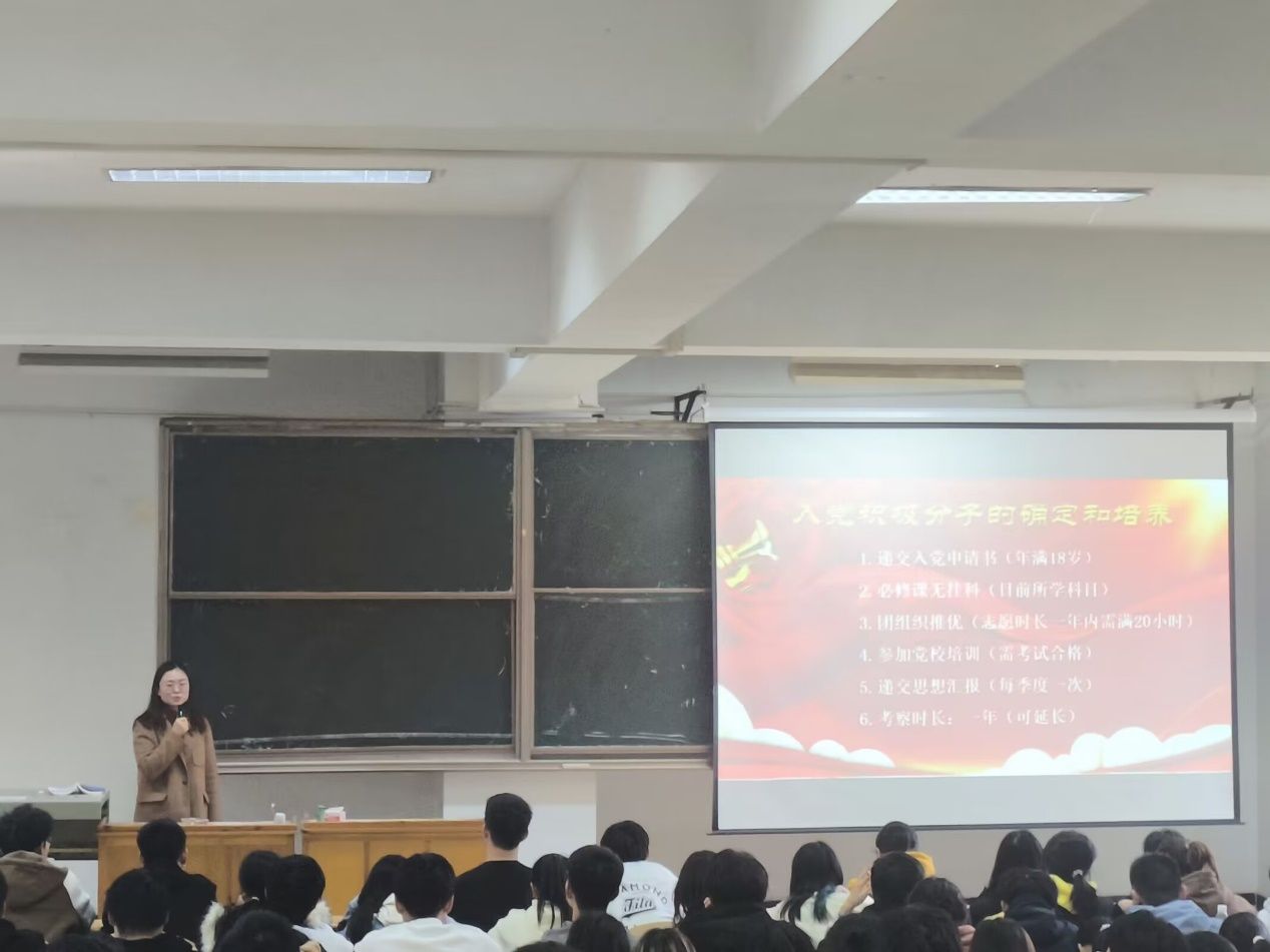 杨依婷系统讲解了入党的主要流程,包括“入党申请,入党积极分子考察,发展对象确定,接收预备党员和转正”等环节,为同学们提供了更加明确的指导。同时现场解答同学们的疑问,鼓励大家踔厉奋发、积极入党。