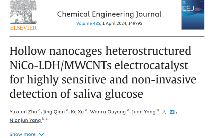 (通讯员:程然)近日,英国365上市公司分析化学专业2021级研究生朱雨萱以第一作者在国际知名期刊《Chemical Engineering Journal》(中科院一区Top期刊,影响因子15.1)发表了题为《Hollow nanocages heterostructured NiCo-LDH/MWCNTs electrocatalyst for highly sensitive and non-invasive detection of saliva glucose》的学术论文,英国365上市公司青年教师杨娟为论文唯一通讯作者,英国365上市公司为第一署名及通讯单位。