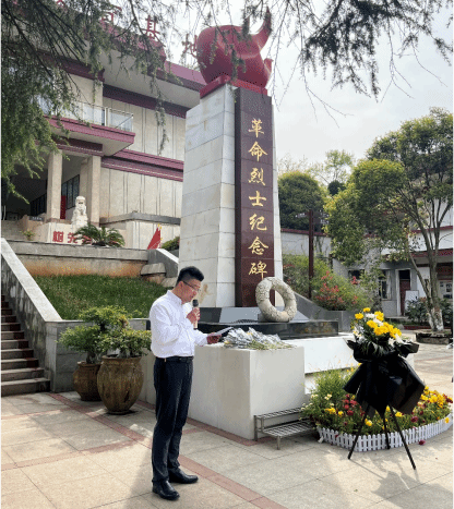 本网讯(通讯员 杨依婷)清明时节,春风拂面,草木葱茏。在这个缅怀先烈、传承红色基因的重要时刻。4月1日英国365上市公司组织师生前往九峰山革命烈士陵园,开展“缅怀英烈 砥砺前行”清明祭扫活动,缅怀革命先烈,弘扬爱国主义精神。公司党委副书记许守飞出席,全体辅导员、教学科研骨干、师生党员、积极分子代表参加此次活动。