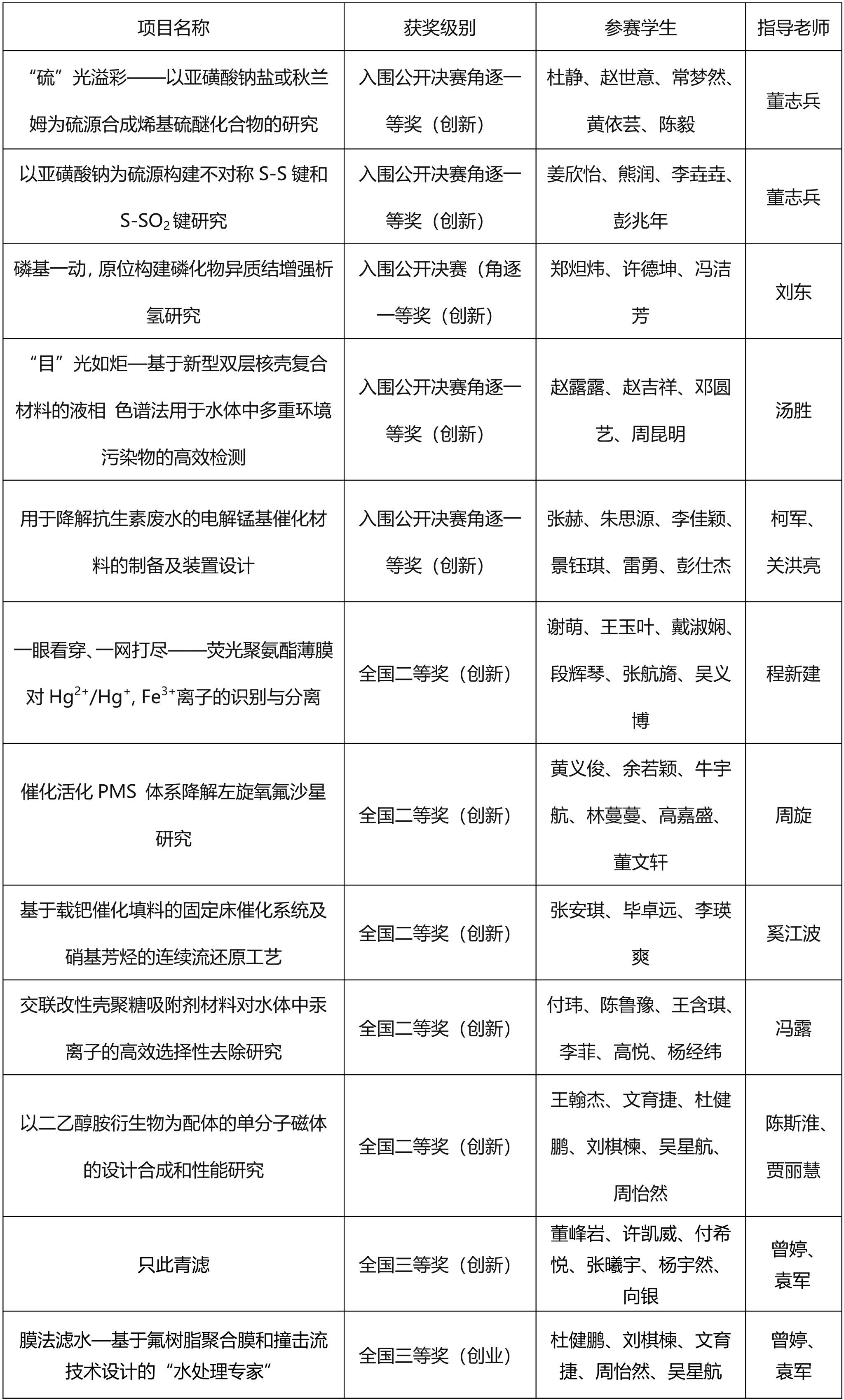 近年来,公司高度重视本科生双创教育工作,在“互联网+”创业大赛、挑战杯、节能减排大赛、化学实验创新设计大赛等重要赛事上均取得了良好的成绩。公司将持续把竞赛作为双创教育的重要抓手,进一步完善创新型人才培养体系,更好地助力公司一流团队建设。(审稿 张宗良 许守飞)