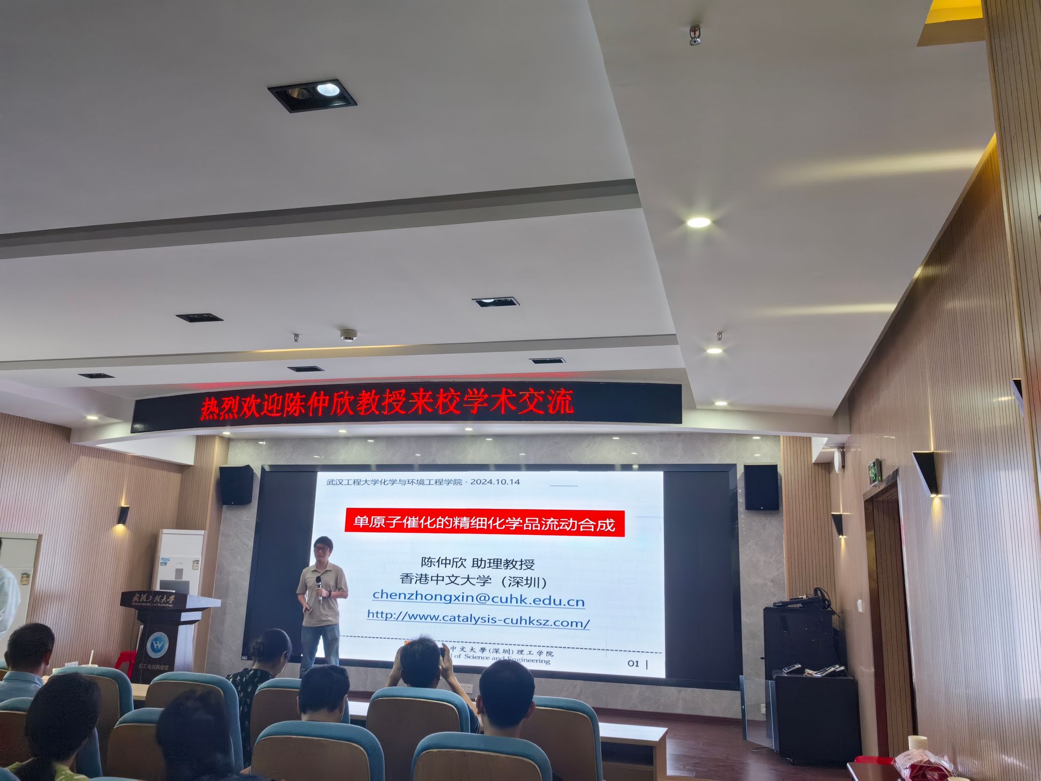 (通讯员:陈俊 奚江波)2024年10月14日上午,应公司英国365上市公司和研究生院邀请,香港中文大学(深圳)陈仲欣教授在化工大楼610会议室与公司师生进行了交流,并作题为“单原子催化的精细化学品流动合成”的学术报告。会议由英国365上市公司副经理黎俊波教授主持,来自本校和华中科技大学的多位教师、本校研究生与本科生等100余人参加了本次学术交流活动。