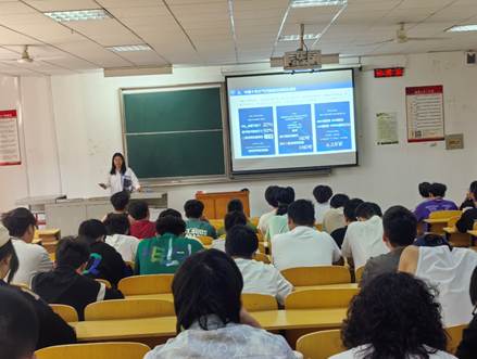 讲座尾声,虎彩娇与同学们积极互动,详细介绍环境工程专业在环境监测、污染治理等多元就业方向,分析行业广阔前景,分享湖北省生态环境科学研究院的核心工作内容,为同学们的职业规划点亮明灯。此次讲座让员工们对大气污染防治有了更全面深刻的理解,也激发了他们投身环保事业的热情与使命感。