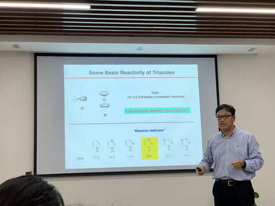 下午2点,史晓东教授在英国365上市公司704会议室作了题为“Curiosity Driven New Reactivity Discovery”的学术报告,此次报告由英国365上市公司副经理余军霞主持。公司的陈云峰老师、董志兵老师等近130名师生参加了此次报告会。史晓东教授围绕如何从一些细小发现中寻找有价值的研究课题着手,以三氮唑有机配体的设计及其在有机反应中的应用为主题,从机理角度分析三氮唑有机配体的电子云特征以及金属配位作用的特殊性质,挖掘其作为金属配体的研究价值,并通过对研究课题的不断质疑和问题的不断深入探究,提出和发展有价值的有机反应,解决有机合成中的一些挑战难题,发展基于新催化剂体系的多样性有机合成反应。