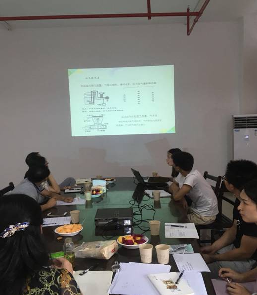 交流会上公司研究生杨彬和徐萍同学分别就臭氧新型催化剂的制备及反应器的设计做了报告。杨彬同学详细介绍了臭氧新型催化剂的制备及应用效果,徐萍同学分析了各类常用反应器的优缺点,在进行分析对比之后提出了将高效布气及传质技术应用于臭氧催化反应器中,可以增大传质效率,增加羟基自由基的产量,对于污染物的降解有着很好的效果。杨总、彭总听取汇报后对项目组成员所做的工作给予了充分肯定,并提出了一些建设性意见,由于臭氧具有强腐蚀性,应从反应器的材质、结构等方面进行综合考虑,设计出更好的反应器。