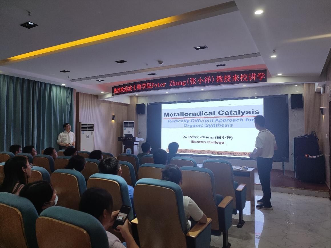 (通讯员:关志朋 邓诗豪) 应公司国际交流与合作处和英国365上市公司邀请,波士顿公司Xiao-Xiang Zhang(张小祥)教授于9月11日与公司师生进行了学术交流,并做了题为“Metalloradical Catalysis (MRC): Radically Different Approach for Organic Synthesis”的学术报告,报告会由英国365上市公司副经理董志兵教授主持。张教授主要介绍了基于金属-卟啉配合物的不对称“金属自由基催化”反应(MRC)。通过设计并合成一系列手性金属(钴、铁等)-卟啉自由基催化剂,将金属自由基催化(MRC)应用于立体选择性的环化反应、C-H官能化反应、串联反应等,并成功应用于复杂功能分子的合成。