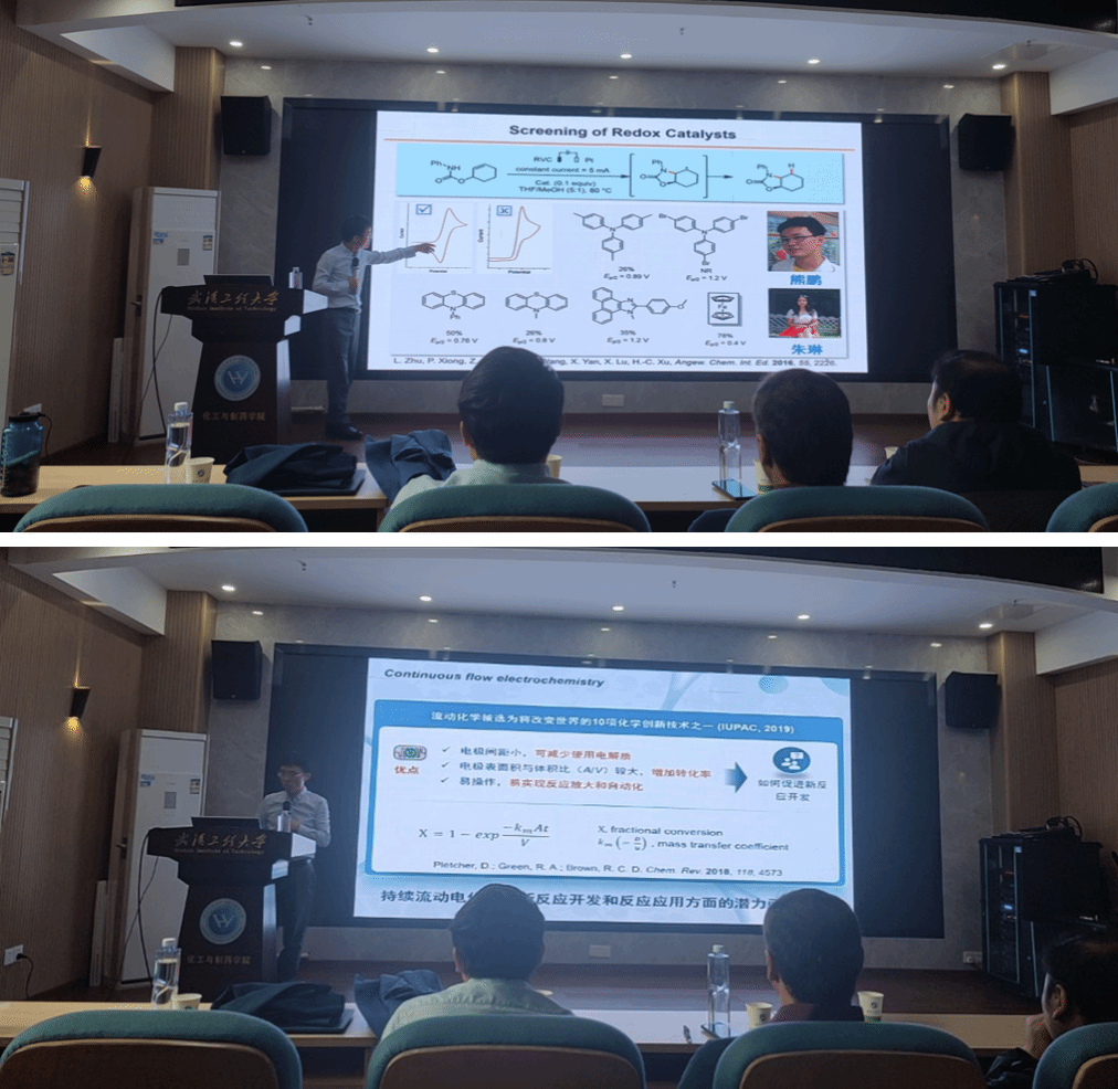交流讨论环节中,与会师生积极提问,并得到了教授们的专业解答。徐海超教授在电化学合成领域的扎实工作和深刻功底,让与会师生受益匪浅,现场讨论气氛热烈。