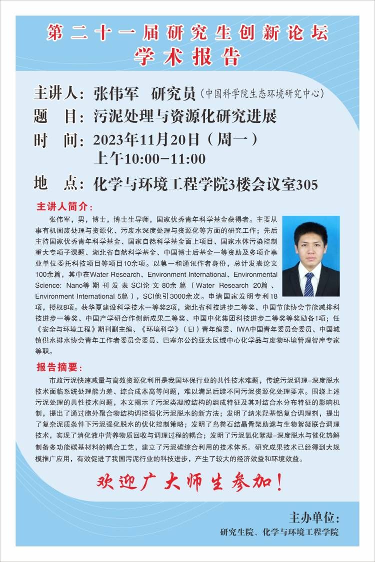【第二十一届研究生创新论坛】污泥处理与资源化研究进展