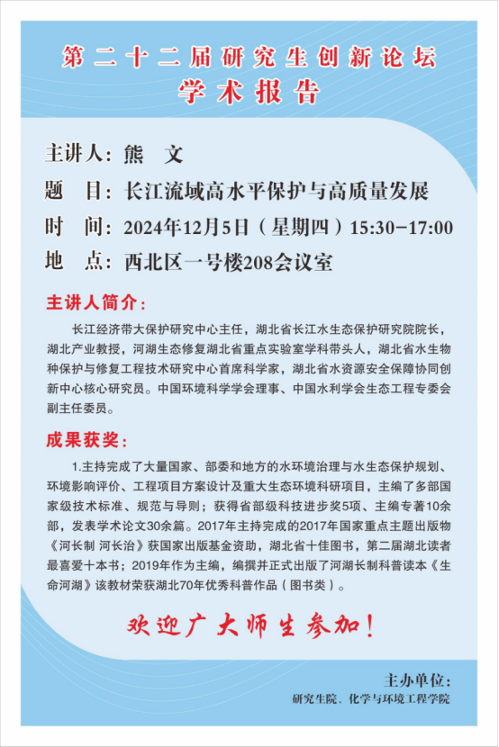 【第二十二届研究生创新论坛】长江流域高水平保护与高质量发展