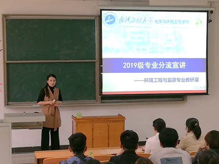 会议伊始,张华丽老师围绕“专业方向设置、专业条件和特色、我们将要学什么、我们将来做什么、优势和机遇”六个方面向同学们介绍环境工程专业概况和分流建议。公司的环境工程专业具有悠久的发展历史,厚重的化工类院校底蕴,伴随着国家经济的发展而壮大,形成了“环化结合、环矿结合”的学科特色,已为全国输送大量的优质环境工程专业人才。目前,环境工程专业的培养方案、团队队伍、硬件设施、管理制度日臻成熟与完善,往届毕业生的参赛获奖、社会实践、就业升学成绩斐然。